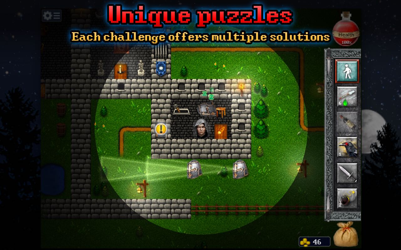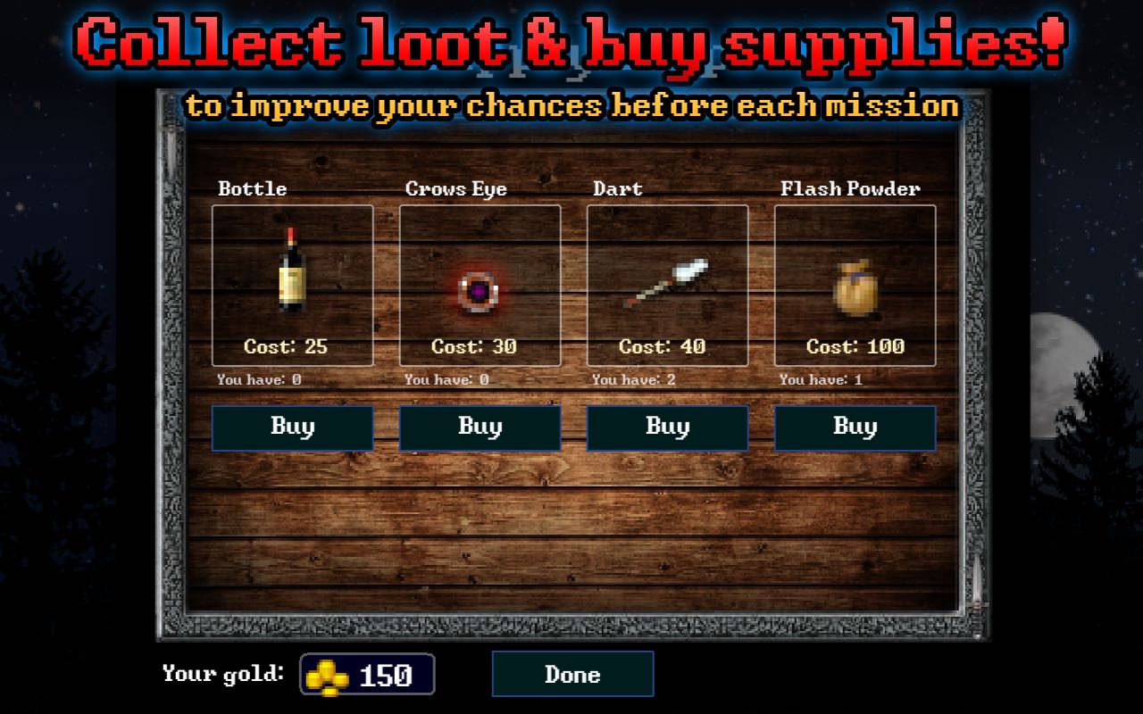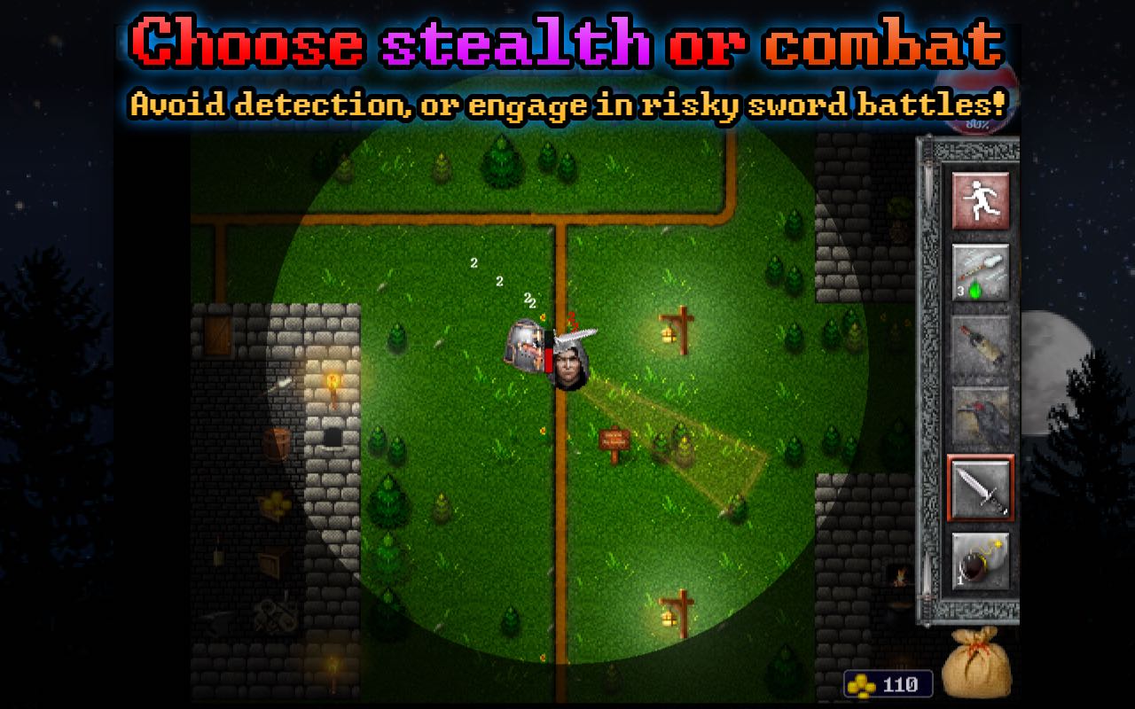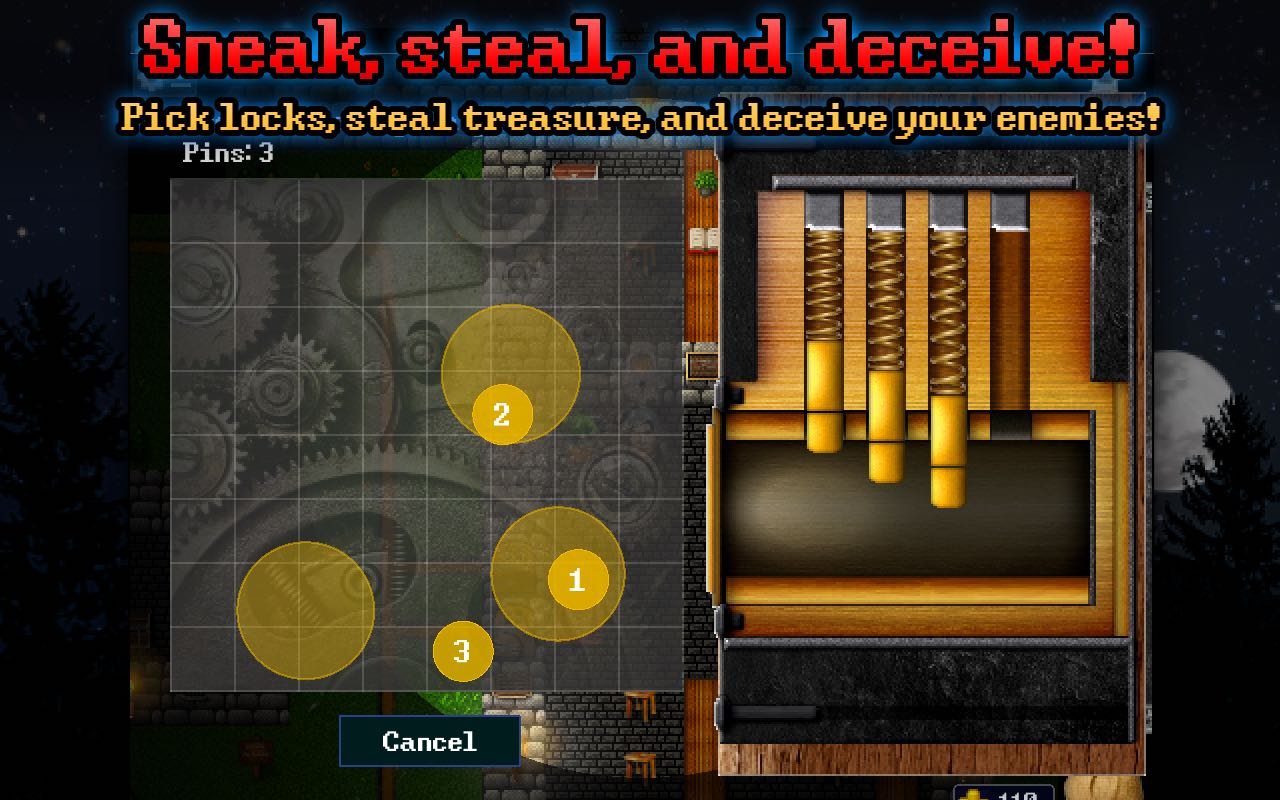 Sneak, steal, and deceive: pick locks, steal treasure, and buy supplies.