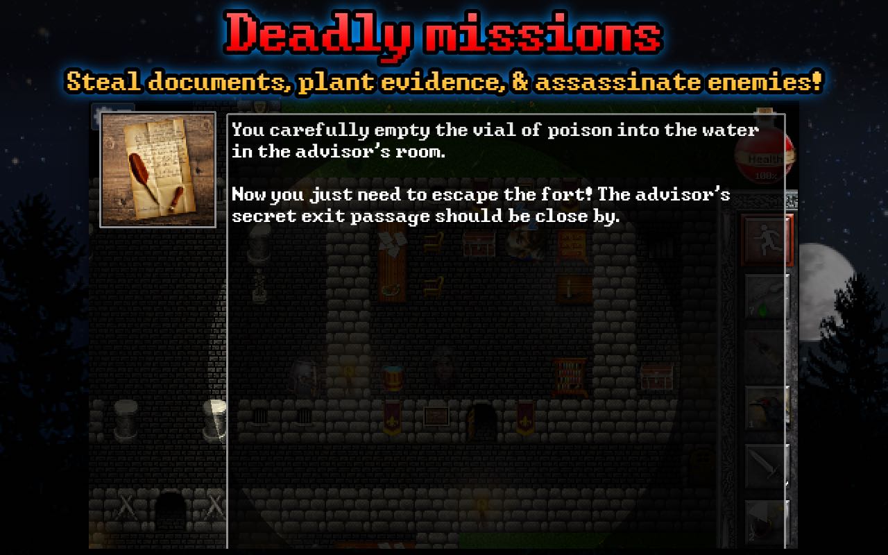 You are a member of a secretive clan of rogue assassins, an agent of stealth and shadow. You will go on critical missions using only your wits and your ninja-like abilities to disable your foes and subvert any group which poses a threat to the peace of the kingdom.